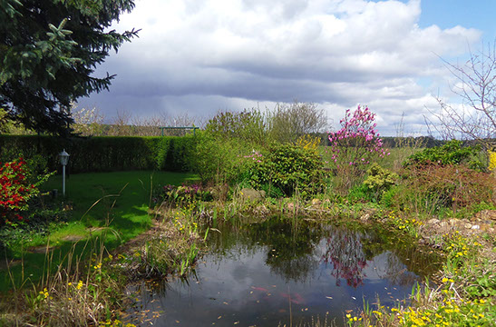 Am idyllischen Gartenteich mit traumhaften Blick ins Grüne erwartet Sie der richtige Platz zum Verweilen.